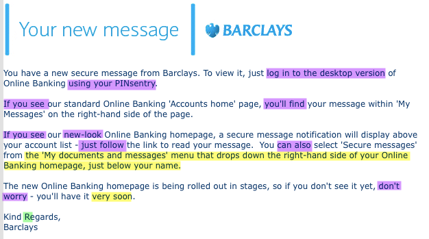 Here’s a great counter example of KYC from Barclays via Conor Ogle: