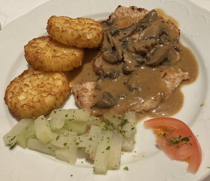 Pork escalope with mushroom sauce and rosti