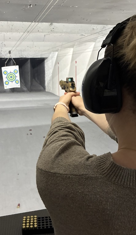They gave us a Sig P320-M17 to try, and it was so nice we didn’t bother swapping for anything else. I particularly liked the red dot sight, which is something I’ve used in games but never before in real life.