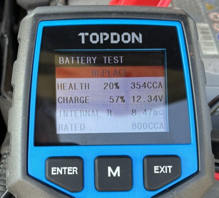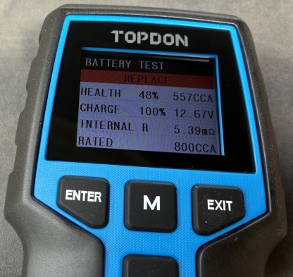 I didn’t have to wait too long for the car to fail to start again. My tester was even more sure of the need to replace:
