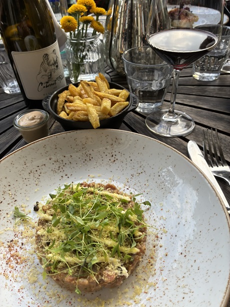 Steak tartare, frites, jalapeno mayo, cabernet